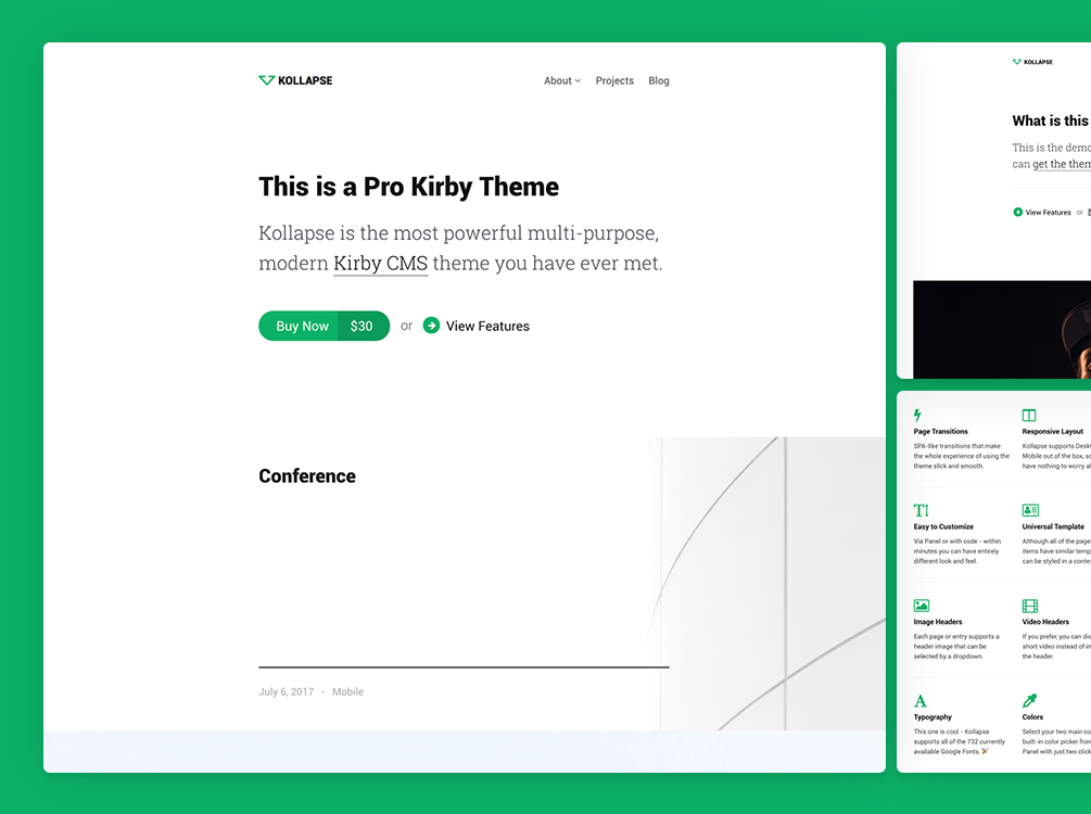 Kollapse is the most powerful multi-purpose, modern Kirby CMS theme you have ever met. It has features you have not seen in a Kirby theme before, such as: